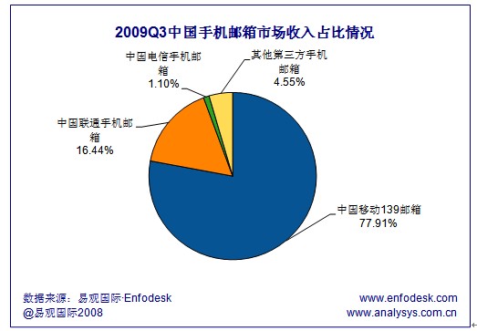 易觀:中移動(dòng)139郵箱領(lǐng)跑2009Q3手機(jī)郵箱市場(chǎng)