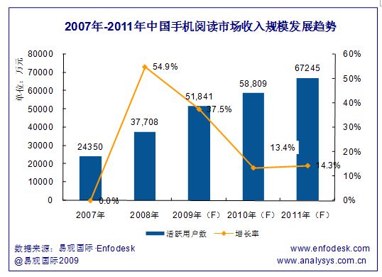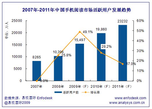 易觀預(yù)測:2010年中國手機(jī)閱讀活躍用戶數(shù)將達(dá)2億