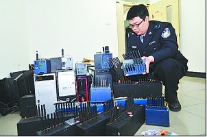 3月23日凌晨5時(shí)許,警方兵分五路,一舉搗毀位于西城、石景山、通州等地的5個(gè)群發(fā)窩點(diǎn),抓獲四川籍向某、河南籍徐某等8名嫌疑人,同時(shí)繳獲了涉案手機(jī)短信群發(fā)器62臺、臺式電腦15臺、筆記本電腦2臺、用于短信群發(fā)的電話卡4000余張。