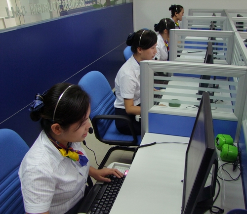 圖:呼叫中心工作人員在接聽(tīng)游客的咨詢電話