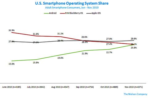 北京時(shí)間1月4日早間消息,市場研究公司尼爾森周一發(fā)布的報(bào)告顯示,在美國智能手機(jī)市場,蘋果的iOS的份額仍然排名首位,市場占有率為28.6%。