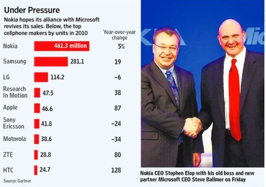 8250,N73,E71 ……曾幾何時(shí),諾基亞幾乎就是手機(jī)的代名詞。直到2008年第二季度,其全球市場(chǎng)份額高達(dá)40%,但此后便開始下滑,2010年第四季度其市場(chǎng)份額跌至31%。
