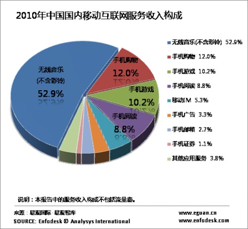 從收入構(gòu)成看來,無線音樂、手機游戲、手機閱讀逐漸成為三大主要移動互聯(lián)網(wǎng)娛樂應(yīng)用,手機購物增速明顯。