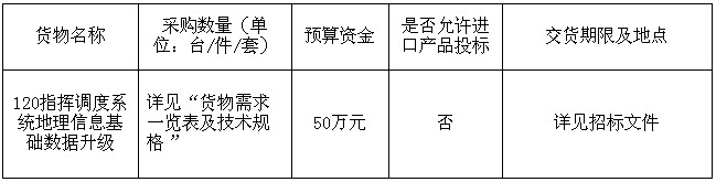 120指揮調(diào)度系統(tǒng)地理信息基礎(chǔ)數(shù)據(jù)升級(jí)采購(gòu)項(xiàng)目招標(biāo)公告