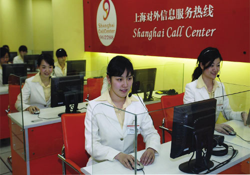 東方網(wǎng)5月1日消息:據(jù)《勞動(dòng)報(bào)》報(bào)道,“Hello。ㄓ⒄Z(yǔ):你好)”、“GutenTag(德語(yǔ):你好)!”、“Bonjour(法語(yǔ):你好)!”……這里就像個(gè)小小的聯(lián)合國(guó),可以聽(tīng)到15種語(yǔ)言;這里又像“女兒國(guó)”,接聽(tīng)電話(huà)的都是80后的姑娘;這里就是上海對(duì)外信息服務(wù)熱線(xiàn)962288,365天、24小時(shí)接聽(tīng)外籍人士的問(wèn)詢(xún)電話(huà)。