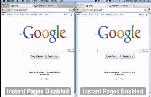 Instant Pages即時(shí)搜索網(wǎng)頁(yè)這一新功能,將會(huì)加快網(wǎng)頁(yè)打開的速度。此項(xiàng)功能目前只限于谷歌Chrome Web瀏覽器。用戶鍵入搜索內(nèi)容的同時(shí),相關(guān)網(wǎng)頁(yè)便開始自行打開,點(diǎn)擊這些網(wǎng)頁(yè)鏈接即可省下等待時(shí)間。這項(xiàng)功能昨日開始公測(cè)。
