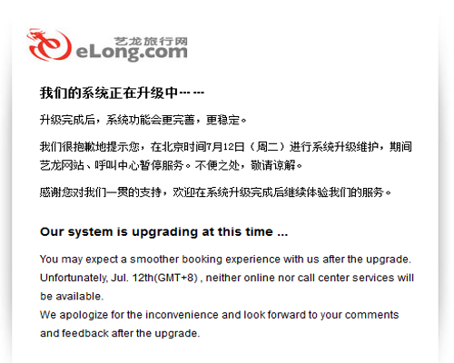 藝龍遭遇存儲故障服務中斷20小時 呼叫中心暫停服務