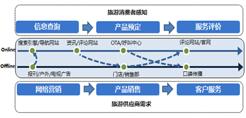 從旅游供應商的維度出發(fā),缺失的兩個環(huán)節(jié)往往對其訂單生成有決定性意義。一方面是在網(wǎng)民獲取旅游信息的環(huán)節(jié)借助互聯(lián)網(wǎng)展示及搜索廣告進行品牌曝光及活動營銷,提升企業(yè)的品牌知名度及銷售轉化率。另一方面是在網(wǎng)民針對旅游服務進行評價及分享的環(huán)節(jié)及時解答服務疑問引導評論主題,通過口碑因素提高老用戶APRU值并帶來新用戶。