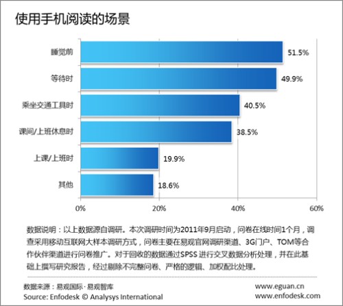 據(jù)易觀國(guó)際(Analysys International)最新報(bào)告《2011年中國(guó)手機(jī)閱讀市場(chǎng)用戶(hù)研究報(bào)告》(以下簡(jiǎn)稱(chēng)《報(bào)告》)研究發(fā)現(xiàn),報(bào)紙、生活資訊、社交資訊等類(lèi)微內(nèi)容超越文學(xué)作品等長(zhǎng)內(nèi)容成為手機(jī)閱讀用戶(hù)的習(xí)慣性閱讀內(nèi)容。
