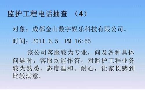 楊靜一稱,在金山客服中心有句常用語(yǔ):“一切以用戶滿意為中心”,即玩家的權(quán)益是第一位的?头䦂F(tuán)隊(duì)通過(guò)多元化的服務(wù)渠道,提供普通坐席、專家坐席、投訴專崗來(lái)分類保障用戶各類需求;而珠海客服分部的設(shè)立,在處理玩家問(wèn)題方面,能與研發(fā)同事達(dá)成高度一致性,在最短時(shí)間內(nèi)針對(duì)游戲問(wèn)題做出反應(yīng)。今年9月,客服團(tuán)隊(duì)獲得了文化部領(lǐng)導(dǎo)在家長(zhǎng)監(jiān)護(hù)方面的表?yè)P(yáng)。