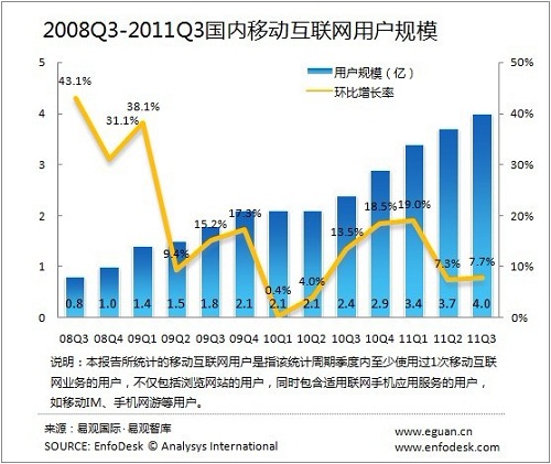 2011第3季度國(guó)內(nèi)移動(dòng)互聯(lián)網(wǎng)用戶(hù)規(guī)模接近4億