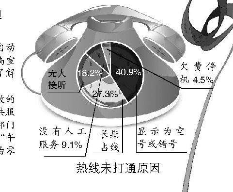 其中超過四成的熱線顯示為空號或錯(cuò)號,這是打不通最主要的原因。