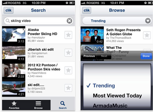 目前Clik只接入了YouTube視頻服務(wù),用戶可以按熱度去瀏覽視頻,也可以搜索、分享視頻。如果不考慮二維碼和同步功能,你會(huì)以為Click只是個(gè)視頻應(yīng)用。不過(guò),利文斯頓認(rèn)為,來(lái)自在線視頻、音樂(lè)、照片和游戲的潛在合作者不應(yīng)認(rèn)為這一應(yīng)用還只是概念。