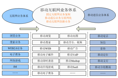 根據(jù)工信部相關(guān)信息,移動(dòng)互聯(lián)網(wǎng)的業(yè)務(wù)體系主要包括三大類,如下圖所示:一是固定互聯(lián)網(wǎng)的業(yè)務(wù)向移動(dòng)終端的復(fù)制,從而實(shí)現(xiàn)移動(dòng)互聯(lián)網(wǎng)與固定互聯(lián)網(wǎng)相似的業(yè)務(wù)體驗(yàn),這是移動(dòng)互聯(lián)網(wǎng)業(yè)務(wù)的基礎(chǔ)。二是移動(dòng)通信業(yè)務(wù)的互聯(lián)網(wǎng)化,如Skype推出的移動(dòng)VOIP業(yè)務(wù)、中國移動(dòng)的飛信業(yè)務(wù)等。三是結(jié)合移動(dòng)通信與互聯(lián)網(wǎng)功能而進(jìn)行的有別于固定互聯(lián)網(wǎng)的業(yè)務(wù)創(chuàng)新,這是移動(dòng)互聯(lián)網(wǎng)業(yè)務(wù)發(fā)展方向。對(duì)創(chuàng)業(yè)者而言,移動(dòng)互聯(lián)網(wǎng)的業(yè)務(wù)創(chuàng)新關(guān)鍵是如何將移動(dòng)通信的網(wǎng)絡(luò)能力與互聯(lián)網(wǎng)的網(wǎng)絡(luò)與應(yīng)用能力進(jìn)行聚合,從而創(chuàng)新出適合移動(dòng)終端的互聯(lián)網(wǎng)業(yè)務(wù),如移動(dòng)Web2.0業(yè)務(wù),如微博、移動(dòng)位置類互聯(lián)網(wǎng)業(yè)務(wù)等。