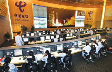 上海電信NOC(網(wǎng)絡(luò)操作維護(hù)中心)主要負(fù)責(zé)城市光網(wǎng)、移動(dòng)網(wǎng)絡(luò)、軟交換、全國(guó)骨干網(wǎng)、海光纜等新型網(wǎng)絡(luò)和業(yè)務(wù)平臺(tái)的集中監(jiān)控和實(shí)時(shí)指揮調(diào)度。當(dāng)城市中任何一個(gè)地方出現(xiàn)網(wǎng)絡(luò)故障,監(jiān)控大廳115平方米的巨型屏幕警報(bào)聲便自動(dòng)響起,中心迅速啟動(dòng)應(yīng)急方案,及時(shí)調(diào)度排障,從而為用戶(hù)提供穩(wěn)定、高效、優(yōu)質(zhì)的通信網(wǎng)絡(luò)保障服務(wù),是“亞太信息樞紐港”的守護(hù)神。