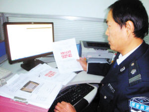 圖為:執(zhí)法人員核對違章號碼。
