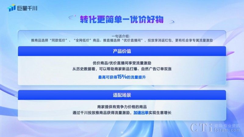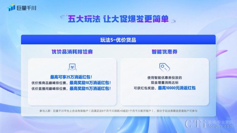 五、「優(yōu)價(jià)貨品玩法 」:優(yōu)價(jià)貨品商家也可以參與優(yōu)價(jià)品消耗排位賽和智能優(yōu)惠券活動(dòng)玩法。平臺(tái)推出優(yōu)價(jià)推商品和優(yōu)價(jià)直播間巔峰排位賽,商家累計(jì)最高可享25萬消返紅包。對(duì)于使用智能優(yōu)惠券投放的商家,現(xiàn)金增量消耗達(dá)標(biāo)可獲得最高10000元的消返紅包獎(jiǎng)勵(lì)。
