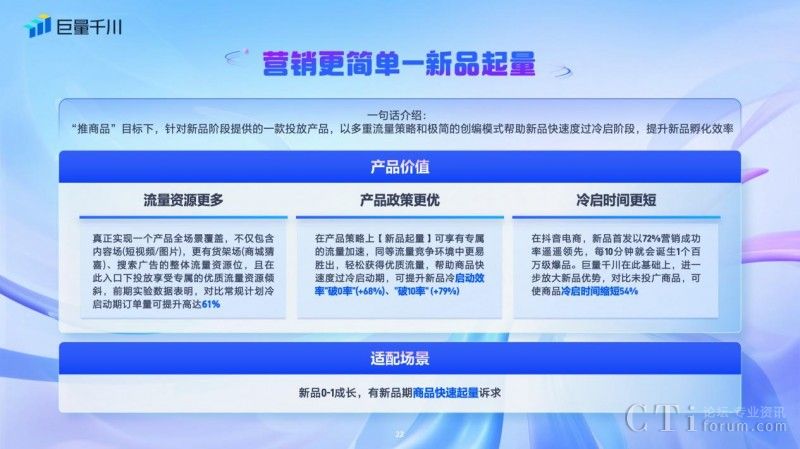 對(duì)于在618好物節(jié)期間想借助流量上行期推新品的商家,「新品起量」助力商家在推商品階段,以多重流量策略和極簡(jiǎn)的創(chuàng)編模式幫助新品快速度過冷啟階段,提升新品孵化效率,讓營銷變得更簡(jiǎn)單。前期實(shí)驗(yàn)數(shù)據(jù)表明,對(duì)比常規(guī)計(jì)劃冷啟動(dòng)期訂單量可提升61%。