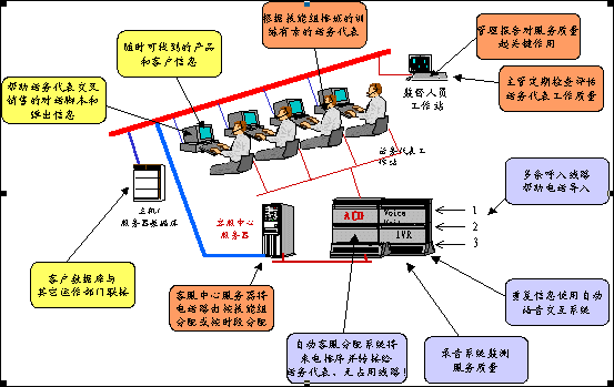 。。呼叫中心可以這樣定義,它是充分利用現(xiàn)代通訊與計(jì)算機(jī)技術(shù),如IVR(交互式語(yǔ)音應(yīng)答系統(tǒng))、ACD(自動(dòng)呼叫分配系統(tǒng))等等,可以自動(dòng)地處理大量各種不同的電話呼入和呼出業(yè)務(wù)和服務(wù)的運(yùn)營(yíng)操作場(chǎng)所。