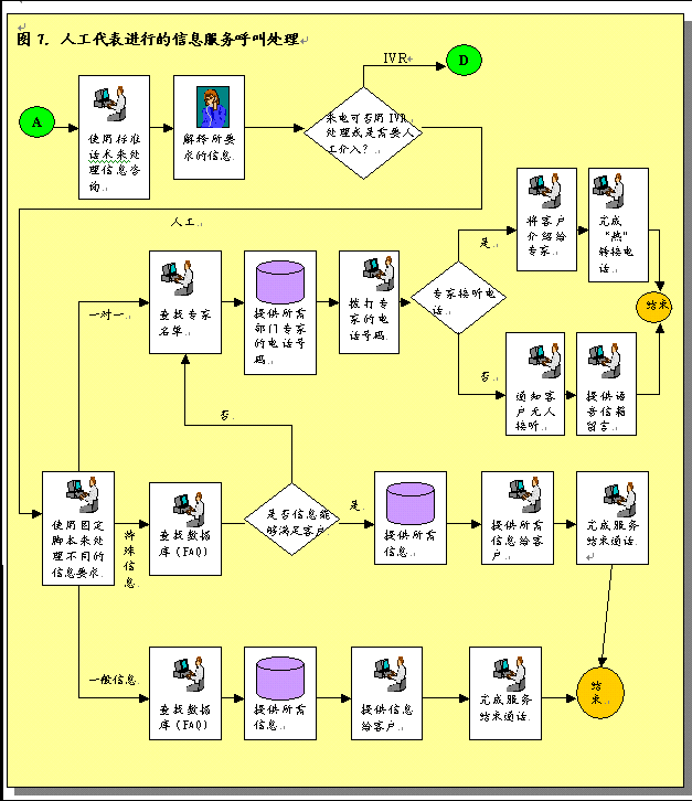 各部門也需要修改步驟處理和完成服務(wù)請求,F(xiàn)在,大多數(shù)公司個別部門接受和完成服務(wù)請求。許多部門在完成工作之后沒有對結(jié)果進(jìn)行跟蹤回訪。對于一些部門服務(wù)請求只是紙上談兵。為了有效的提供呼叫中心服務(wù)并為服務(wù)請求提供信息,各部門必須采用新的步驟。這些步驟應(yīng)包括從服務(wù)請求系統(tǒng)中重新獲取呼叫請求信息,跟蹤這些請求,工作完成后更新服務(wù)請求系統(tǒng)。對于沒有信息系統(tǒng)和目前使用人工操作的部門,要達(dá)到這一工作要求就需要設(shè)計和實施新的程序和系統(tǒng)。