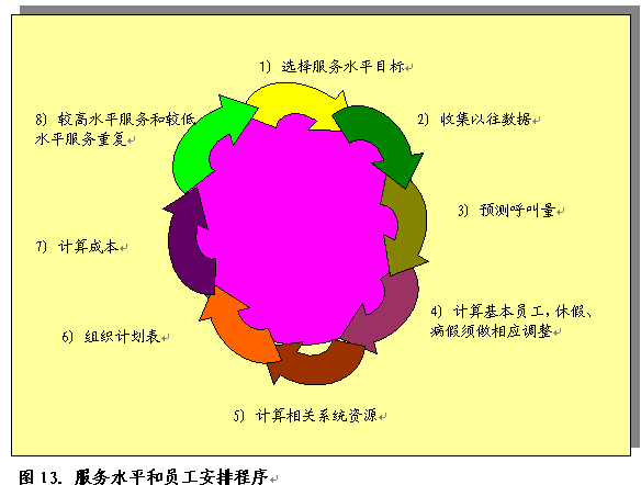 要準(zhǔn)確預(yù)測(cè)員工需求量,至少需要四個(gè)月的相關(guān)數(shù)據(jù)。這些數(shù)據(jù)將收錄在自動(dòng)工作表制訂工具中。圖13舉例說明了呼叫中心可采取的此類步驟。