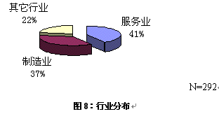 行業(yè)分布,來自服務(wù)業(yè)和競爭激烈的制造業(yè)企業(yè)的居多,其中的服務(wù)業(yè)有金融、電信、網(wǎng)絡(luò)信息和教育等。參加調(diào)查的著名公司有:中國電信、聯(lián)通、建設(shè)銀行、華夏證券、康佳、小天鵝、潤迅、海信、廣東福地、一汽、萬科物業(yè)等。