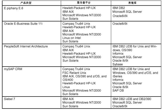 有些環(huán)境是軟件所必須要支持的。技術(shù)架構(gòu)必須要支持Microsoft NT/2000、Sun Solaris服務(wù)器平臺、IBM DB2、Microsoft SQL Server和Oracle Server管理系統(tǒng)。這些都是世界領(lǐng)先的系統(tǒng)環(huán)境,而且也是企業(yè)最可能要使用到的系統(tǒng)。因此如果產(chǎn)品不能支持這些環(huán)境顯然會產(chǎn)生很大的局限性。從上表我們可以看出,除了Oracle外都能夠支持這些“必須的“環(huán)境。(因?yàn)镺racle必須要支持自己的數(shù)據(jù)庫。)