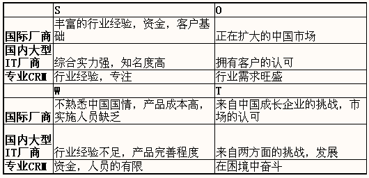 國內(nèi)的大型軟件公司,ERP+CRM的優(yōu)勢。為了擴(kuò)展其產(chǎn)品線的需要,也在近幾年進(jìn)入了CRM領(lǐng)域。用友公司的金種子計(jì)劃,金碟公司的東方明珠計(jì)劃逐漸加強(qiáng)投入,神州數(shù)碼與臺(tái)灣軟件公司的合作恐怕也不會(huì)不對這樣一塊蛋糕有所想得。
