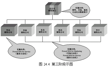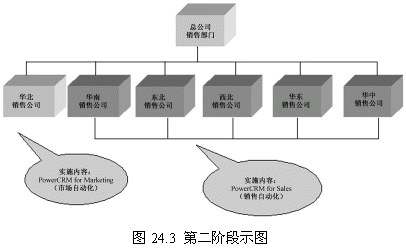 這一階段首先確立一個(gè)點(diǎn)(華北銷售公司),這個(gè)點(diǎn)的選擇要考慮多方面的因素,比如員工素質(zhì)、電腦應(yīng)用水平以及基礎(chǔ)設(shè)施等。第一階段目標(biāo)的實(shí)現(xiàn)對(duì)整個(gè)項(xiàng)目關(guān)系重大,是一個(gè)示范性的實(shí)施,對(duì)維持管理層和員工對(duì)CRM項(xiàng)目的信心具有重要的意義。