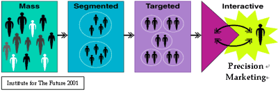 首先,互聯(lián)網(wǎng)的出現(xiàn)改變了營銷的概念,為大規(guī)模定制創(chuàng)造了空前的機遇。隨著富裕而又有辨別能力的中產(chǎn)階級的逐漸壯大,預先營銷的期望以及針對個人的解決方案日益成為一種標準。從記住他們的行為&偏好并為他們發(fā)送相關(guān)產(chǎn)品信息 (例如Amazon.com) …到幫助他們得到自己理想中的產(chǎn)品 (例如Dell.com,) ,CRM觀念的關(guān)鍵之處就在于為客戶提供符合他們需求的產(chǎn)品/服務(wù)而不是向他們推銷你的東西;ヂ(lián)網(wǎng)使你能夠與客戶建立學習關(guān)系,從銷售轉(zhuǎn)移到解決問題;ヂ(lián)網(wǎng)上的CRM已經(jīng)上升到了另一個高度。