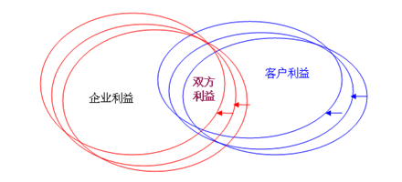 如何才能改善客戶得到的價值呢?如何才能在企業(yè)利益與客戶利益之間找到一個最佳平衡點?方法之一是把自己想要做的事情勾勒一下。我們想要找到的是雙贏區(qū)域。在比較復(fù)雜的情況下,這個雙贏區(qū)域可能還會移動。設(shè)計一個應(yīng)用軟件并配置一套人員流程來跟蹤一個會移動的雙贏區(qū)域顯然是不大可能的。這也正是CRM為何如此難以把握的原因之一。