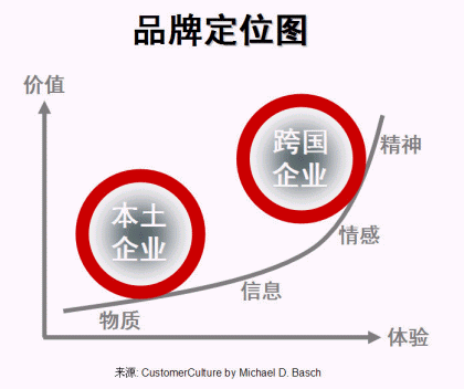 客戶體驗(yàn)是客戶關(guān)系管理的重要組成部分。根據(jù)過去數(shù)年評選中國最佳CRM實(shí)施企業(yè)所作的分析,本土與外資企業(yè)在企業(yè)體檢中各項(xiàng)主要評分中有較大差距,其中之一是客戶體驗(yàn)(-7.1分,見圖一、本土與跨國企業(yè)之差距)。本土企業(yè)若只提供低層次的客戶體驗(yàn),只為客戶帶來低價值,也只能打價格戰(zhàn)、做代工,很難做大做強(qiáng)打通全球市場。做好品牌,其實(shí)再深入一點(diǎn)說就是要做好客戶體驗(yàn),價值(價格)才會上去(見圖二、品牌定位)。