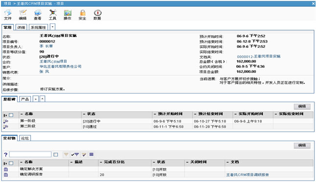VamCRM提供專業(yè)的項目管理模塊,支持項目范圍管理、時間管理、資源管理、質(zhì)量管理、成本管理。支持以銷售合約為驅(qū)動、過程清晰、全程受控的項目管理方式為客戶交付產(chǎn)品和服務(wù)。VamCRM融入成熟的項目管理方法和成功的實踐經(jīng)驗,從整體上對項目進行規(guī)劃、組織、執(zhí)行、控制,使企業(yè)可以更加優(yōu)質(zhì)地為客戶提供長期的服務(wù)。項目創(chuàng)建后,VamCRM系統(tǒng)會自動生成一個與當(dāng)前項目相匹配的文件夾,為項目執(zhí)行過程中產(chǎn)生的交付物或項目的有關(guān)文檔提供統(tǒng)一的存檔位置;項目全程融合項目管理的方法,分里程碑管理項目活動和交付物,實時統(tǒng)計項目的關(guān)鍵數(shù)據(jù),并且里程碑及所屬活動和交付物等都可分狀態(tài)量化標(biāo)識,對項目進展做到實時監(jiān)控,避免了在項目實施中的“救火”行動和盲目發(fā)展。也可自動關(guān)聯(lián)記錄并統(tǒng)計所有項目進展過程中發(fā)生的預(yù)算與費用,實現(xiàn)項目費用清晰可控。伴隨著項目的進程,可以記錄所有在項目執(zhí)行過程中相關(guān)的聯(lián)系人、文檔、備忘錄等數(shù)據(jù),形成完整的項目內(nèi)容集合。項目中還包括基于項目的論壇,供項目組成員就項目的相關(guān)問題進行在線交流,同時,項目管理全程與企業(yè)高效協(xié)同的業(yè)務(wù)流程無縫集成,能夠使企業(yè)的相關(guān)部門以項目為導(dǎo)向,集中所有資源高效協(xié)同服務(wù),大大降低項目執(zhí)行風(fēng)險。