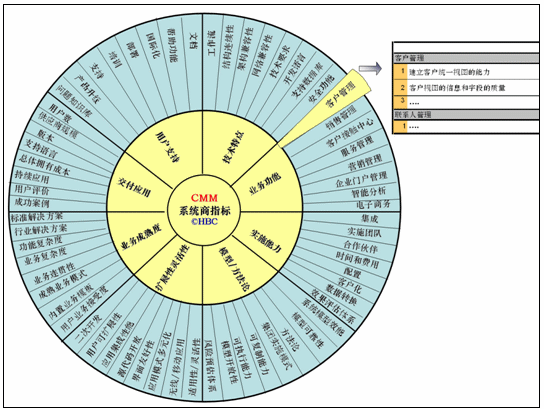 CMM體系中的標(biāo)準(zhǔn)并非在每一次評估中都需要用的,它實(shí)際上是一個(gè)滿足大部分CRM評估的標(biāo)準(zhǔn)的合集。所以應(yīng)用者首先要自己或者借助評估顧問來選擇CMM指標(biāo)范圍,確定哪些指標(biāo)參與此次評估。