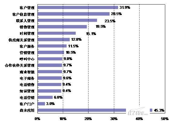 與2006年相比CRM市場(chǎng)前景依然廣闊,企業(yè)應(yīng)用依然集中在客戶管理,客戶信息管理,聯(lián)系人管理等主要的應(yīng)用領(lǐng)域,品牌認(rèn)知度上,與2006年的數(shù)據(jù)沒(méi)有太大的變動(dòng)。
