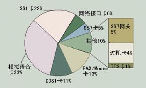 經(jīng)過(guò)對(duì)用戶抽樣調(diào)查,目前各用戶使用的語(yǔ)音卡類型如圖1分布。從圖1可以看出,語(yǔ)音卡目前應(yīng)用最多的還是模擬語(yǔ)音卡,比例為33%,其次是SS1卡,比例為22%,第三位的卡是傳真卡,比例為13%。
