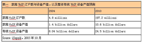 目前,在整體VoIP設(shè)備市場中,家庭用戶增長速度最快,到2010年,這部分市場的產(chǎn)值將達(dá)106億美元,這比起2004年14億美元增長了650%。