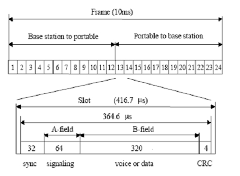 DECT協(xié)議體系與開放系統(tǒng)互連(OSI)參考模型的較低層密切相關(guān)。DECT有一個(gè)物理層,一個(gè)數(shù)據(jù)鏈路層及一個(gè)網(wǎng)絡(luò)層。數(shù)據(jù)鏈路層是由媒體訪問控制(MAC)層和數(shù)據(jù)鏈路控制(DLC)層組成的。