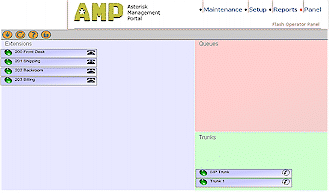 面板標(biāo)簽(圖8)是一個(gè)由Flash建立的操作面板,它包含有不同的extensions、隊(duì)列和中斷,并可允許你來查看誰在使用這個(gè)系統(tǒng),還可轉(zhuǎn)移呼叫、掛斷線路并可通過面板來建立電話會議。