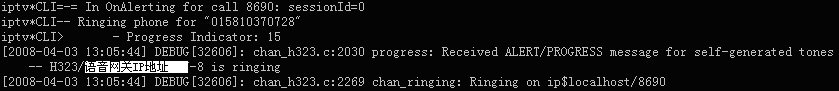表示軟交換Asterisk與華為8010語(yǔ)音網(wǎng)關(guān)的H323連接已經(jīng)成功建立