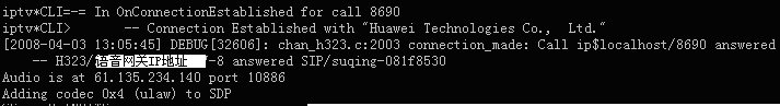 Asterisk與華為8010語(yǔ)音網(wǎng)關(guān)的H323連接已經(jīng)成功建立