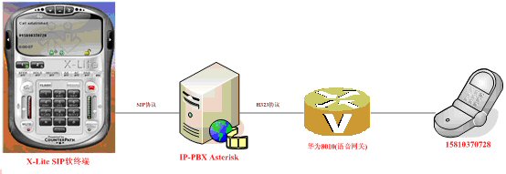 2.IP-PBX(VoIP 軟交換),對(duì)應(yīng)圖4-1的呼叫控制器:基于開(kāi)源軟交換平臺(tái)Asterisk,接受VoIP軟終端(或其它能發(fā)起SIP/H323請(qǐng)求的硬件終端)發(fā)起的呼叫信令、解析被叫號(hào)碼、構(gòu)建VoIP語(yǔ)音數(shù)據(jù)包發(fā)送到IP網(wǎng)絡(luò)中。