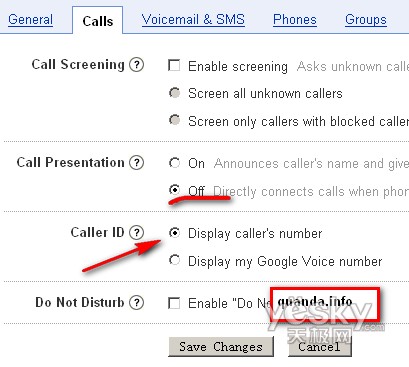 也許很多朋友嘗試不成功,原因是還需要在Google voice中設(shè)定 Display caller’s number.因為28tel需要在電話呼入的時候識別來電顯示的。