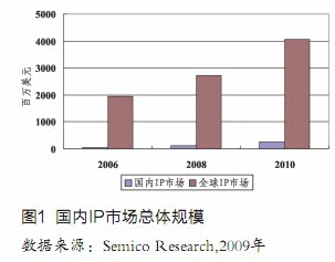 中國是全球最大的半導(dǎo)體市場之一,但是相對應(yīng)的中國集成電路IP(知識產(chǎn)權(quán))市場只有5610萬美元,僅為全球市場的2.8%,仍屬于起步階段。根據(jù)Semico Research的分析,到2010年中國IP市場將增長到2.47億美元,占全球市場的6%,年均增長率高達44.9%,遠(yuǎn)超過全球IP市場的18.3%的增長率(見圖1)。