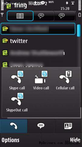 Fring是一款免費(fèi)的手機(jī)VoIP軟件,用戶可以使用這款軟件通過3G、EDGE、GPRS或WiFi連接網(wǎng)絡(luò),把Skype、MSN Messenger、Google Talk及ICQ等即時(shí)通訊系統(tǒng)中的好友整合到一個(gè)好友列表中,然后和他們打VoIP 電話或進(jìn)行即時(shí)通信。今天Fring宣布開始支持Symbian智能手機(jī)使用該軟件和好友進(jìn)行視頻通話功能。