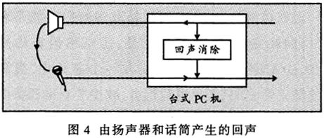 ——在IP電話的應用中,人們?nèi)羰褂脫P聲器和麥克風就可能出現(xiàn)回聲現(xiàn)象。如圖4所示。