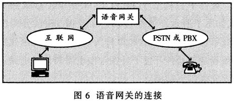 ——圖6為計算機到普通電話的通信方式。語音網(wǎng)關的一側(cè)與公眾電話網(wǎng)或用戶小交換機相連。在主叫方,它接收電話信令,將其數(shù)字化、壓縮、打包(語音包)并送到互聯(lián)網(wǎng)上;在被叫方,它從互聯(lián)網(wǎng)上接收語音包,解包、解壓并將其發(fā)送到公眾電話網(wǎng)或用戶小交換機上。