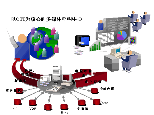呼叫中心與互聯(lián)網(wǎng)技術(shù)的結(jié)合,意味著客戶在瀏覽某一公司的網(wǎng)頁時,如果希望就某一問題與客戶服務(wù)代表進(jìn)行討論,此時客戶并不需要主動撥打客服中心的電話號碼,然后等待轉(zhuǎn)接到空閑的業(yè)務(wù)代表,再花時間向業(yè)務(wù)代表解釋他/她的意圖。而是擁有多種與呼叫中心聯(lián)系的方式,從而將貴公司的互聯(lián)網(wǎng)客戶服務(wù)與電話客戶服務(wù)更好地結(jié)合在一起,為您的客戶提供全方位、多元化的服務(wù)。優(yōu)利公司相信,這種客戶服務(wù)代表與Internet的互動,將為客戶服務(wù)與銷售提供一個強有力的媒介環(huán)境。