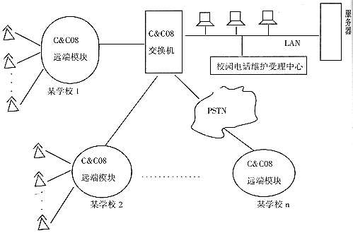 解決校園電話的問題主要在于兩個方面,首先是要解決學(xué)生打電話的問題,其次是要解決學(xué)生接電話的問題。對于前者,目前各地基本上都是采取在校園安裝投幣電話、磁卡電話及IC卡電話的方式,但這些電話機投資較大、防盜打能力有限、維修不方便。放在室外易受損、被盜、覆蓋率有限,使得在人口密集地區(qū)不可能大規(guī)模使用,而且它們也不能很好地解決學(xué)生接電話的問題。要想從根本上解決校園電話的問題就在于給每個學(xué)生宿舍(醫(yī)院中即每個醫(yī)院病房)裝電話,然后利用所裝的電話提供多樣化的可供學(xué)生選擇的業(yè)務(wù)。