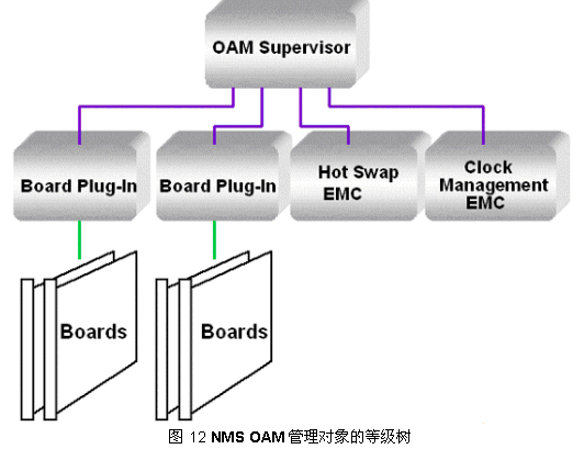 NMS公司的OAM組件是作為Natural Access服務(wù)提供給用戶的,用以管理一個(gè)機(jī)架甚至多個(gè)機(jī)架上的NMS板卡和軟件模塊。OAM即操作(Operation)、管理(Administration)、維護(hù)(Maintenance),通過OAM可以創(chuàng)建、刪除、查詢OAM下的各組件的配置,啟動、終止或測試組件的運(yùn)行,以及接收從組件發(fā)出的告警等事件通知。